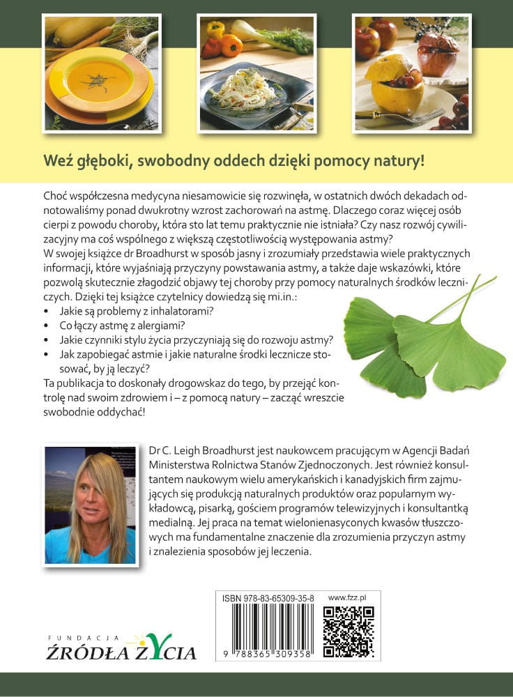 W swojej książce dr Broadhurst w sposób jasny i zrozumiały przedstawia wiele praktycznych informacji, które wyjaśniają przyczyny powstawania astmy, a także daje wskazówki, które pozwolą skutecznie złagodzić objawy tej choroby przy pomocy naturalnych środków leczniczych.