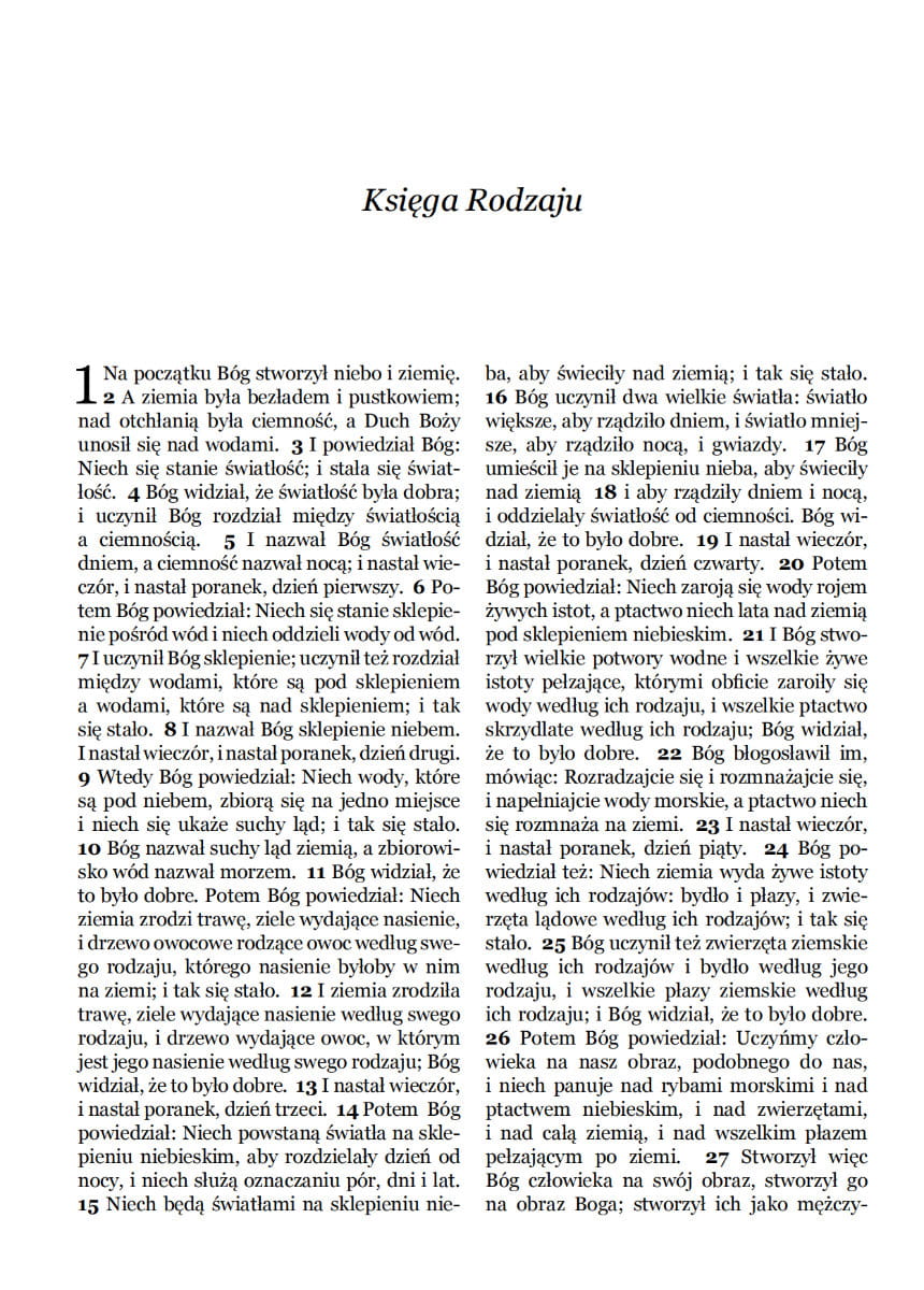 Autorzy niniejszego opracowania Biblii przyjęli jako tekst bazowy słynne wydanie Biblii gdańskiej z roku 1632, która cieszyła się olbrzymią popularnością przez ponad 350 lat. W drugiej połowie XX wieku była jednak stopniowo wypierana przez nowsze przekłady.