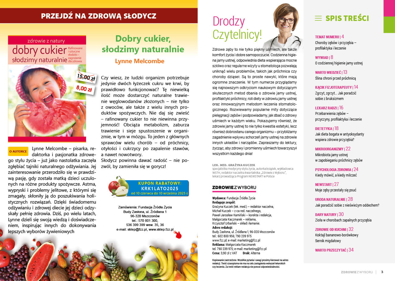 Zdrowe zęby to nie tylko piękny uśmiech, ale także komfort życia i dobre samopoczucie. Codzienna higiena jamy ustnej, odpowiednia dieta wspierająca mocne szkliwo oraz regularne wizyty u stomatologa pozwalają uniknąć wielu problemów, takich jak próchnica czy choroby dziąseł. Są to proste nawyki, które mają ogromne znaczenie. W tym numerze przyglądamy się najnowszym odkryciom naukowym dotyczącym skutecznych metod dbania o zdrowie jamy ustnej, profilaktyki próchnicy, roli diety w zdrowiu jamy ustnej oraz innowacyjnym metodom leczenia stomatologicznego. Rozwiewamy popularne mity dotyczące pielęgnacji zębów i podpowiadamy, jak dbać o zdrowy uśmiech w każdym wieku. Pokazujemy również, że zdrowie jamy ustnej to nie tylko kwestia estetyki, lecz również dobrostanu całego organizmu – przybliżamy zagadnienie wpływu schorzeń jamy ustnej na zdrowie innych układów i narządów. Zapraszamy do lektury