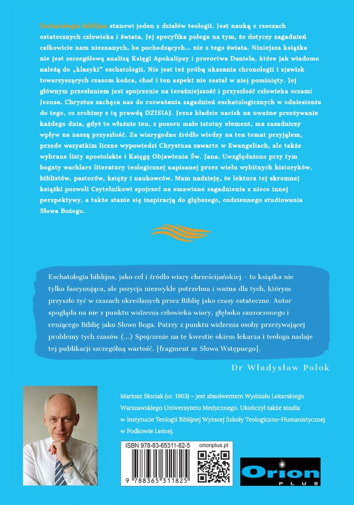 Czy warto bać się końca świata? Czy faktycznie powinniśmy z niepokojem w sercu, śledzić każde medialne doniesienie o zbliżającej się do naszej planety, kolejnej asteroidy? Czy lęk przed przyszłością jest właściwą postawą człowieka? Ta niewielka książka, jest próbą odnalezienia na kartach Biblii, odpowiedzi na te ważne pytania. Określenie - Eschatologia biblijna - choć brzmi nieco tajemniczo - to nic innego, jak nauka o rzeczach ostatecznych (końcowych) w świetle przekazu tej starożytnej Księgi.