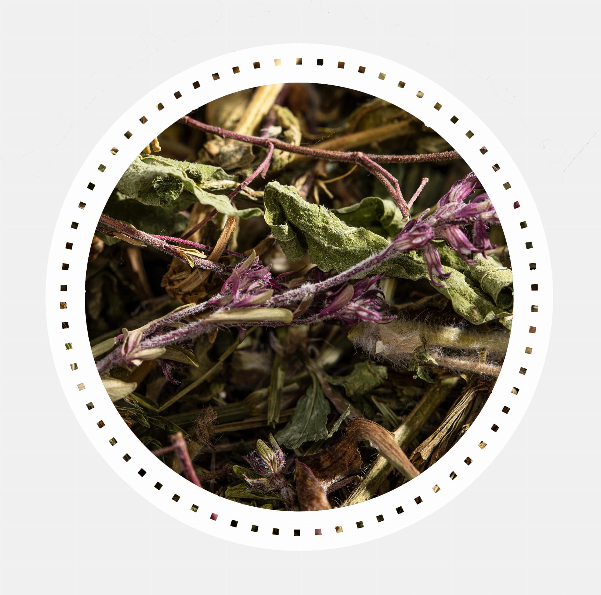- macierzanka piaskowa (Thymus serpyllum) (cała roślina naziemna, pocięta).